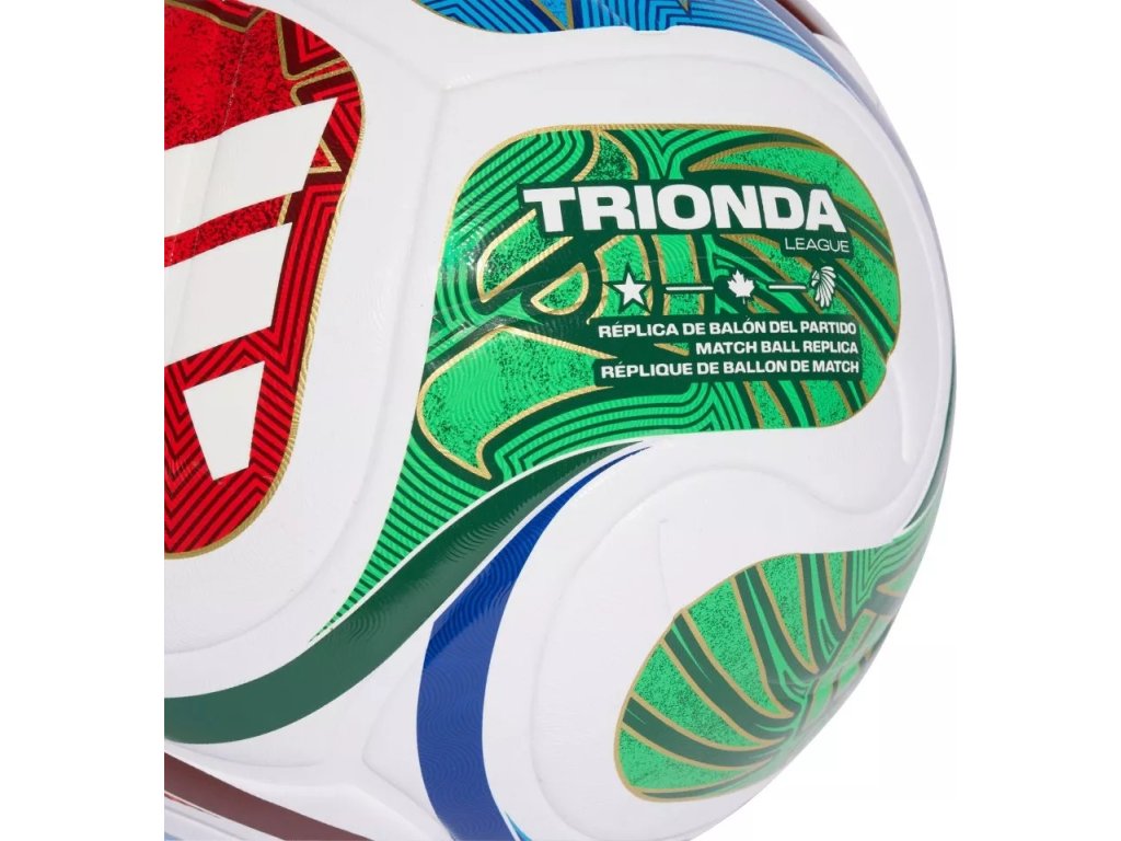 Míč adidas Trionda League je určen pro trénink i zápasy, má bezešvý povrch a reliéfní texturu, která může přispět k přesnosti a stabilitě za letu. Jeho grafika je inspirována třemi hostitelskými zeměmi mistrovství světa ve fotbale FIFA World Cup 26™ a napodobuje vzhled oficiálního zápasového míče turnaje.