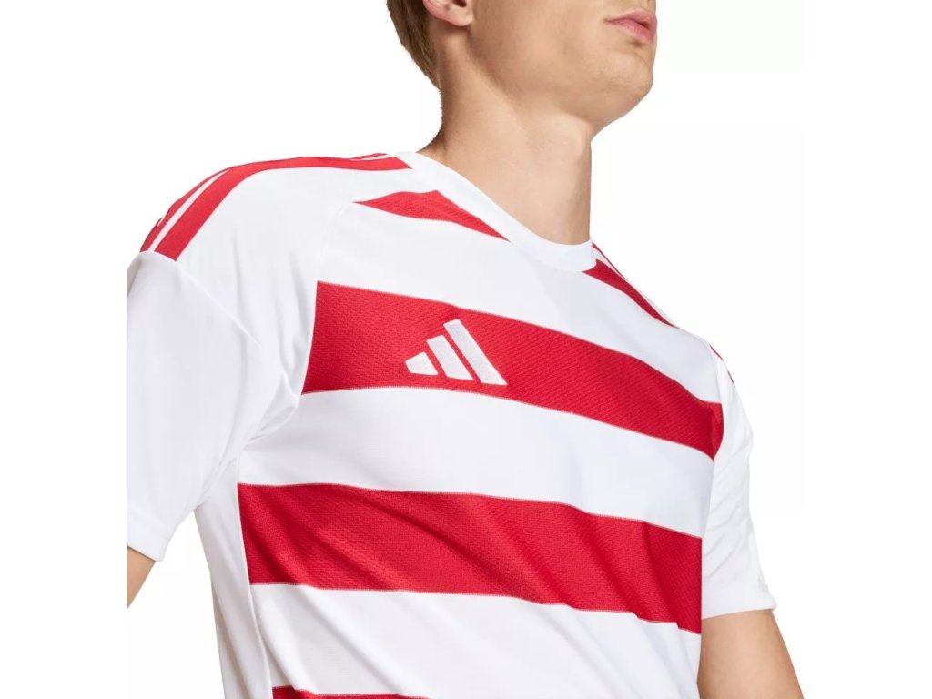 Pánský dres s krátkým rukávem adidas Hooped 26 je klasický model navržený pro vysoký výkon na hřišti, který kombinuje čistý vzhled s funkčností. Díky těsnému střihu a pletené konstrukci působí moderně a zároveň zajišťuje optimální prodyšnost při hře. Technologie climacool účinně odvádí pot od těla a napomáhá jeho rychlému odpařování, takže zůstaneš v suchu, chladu a plně soustředěný na výkon po celý zápas.