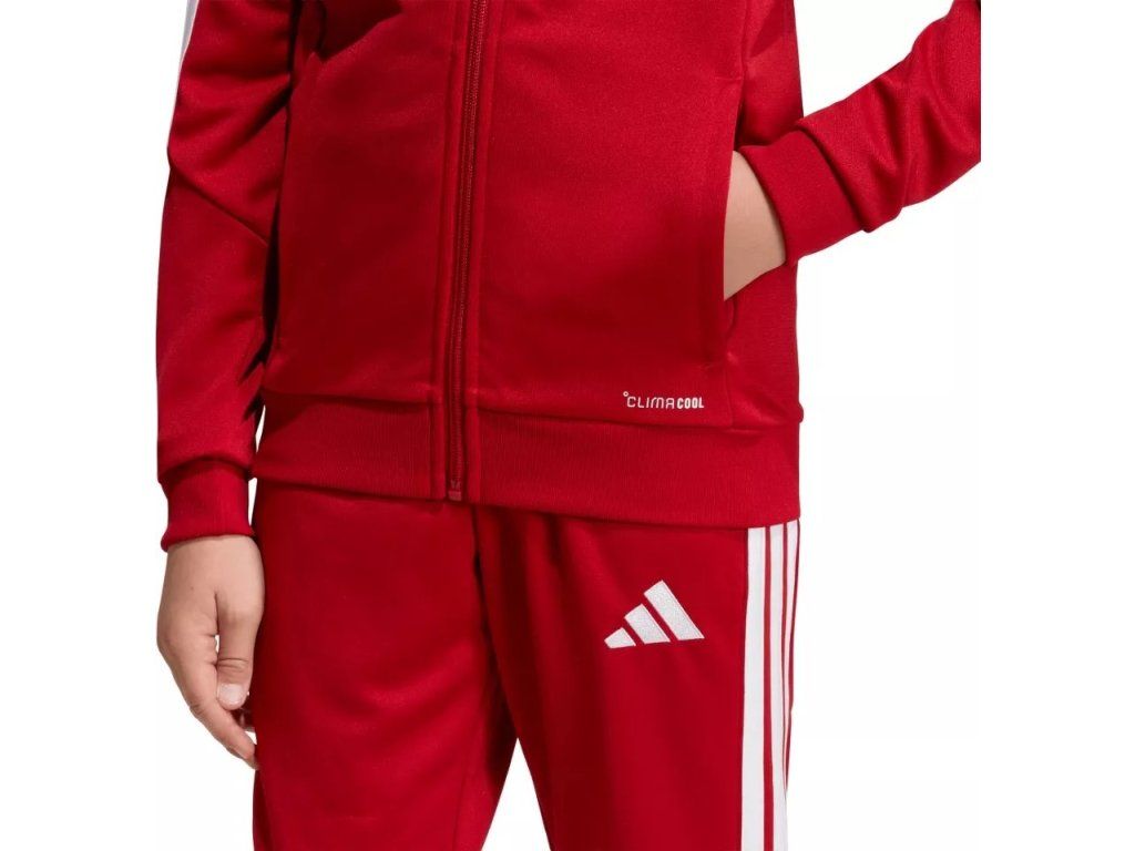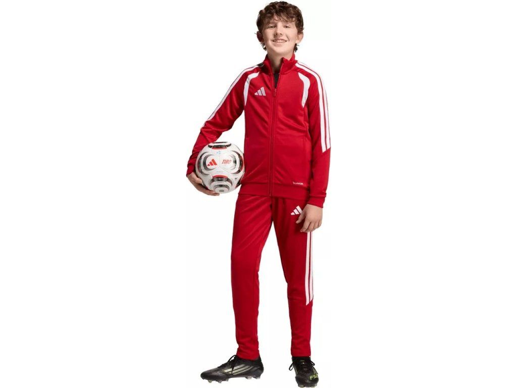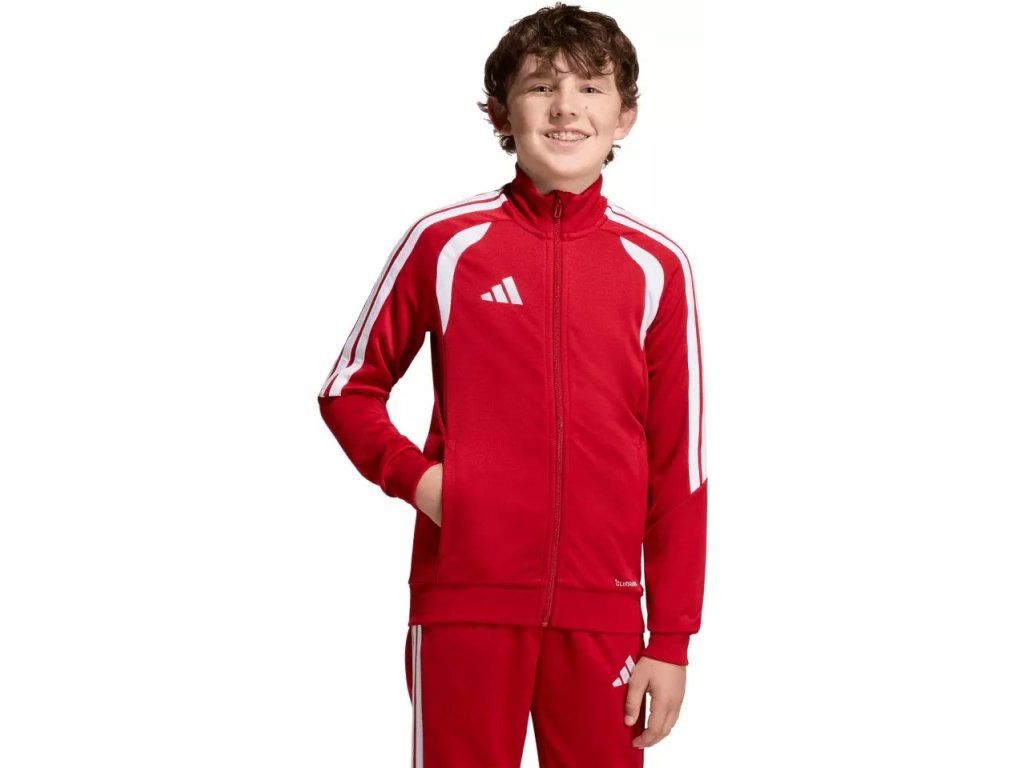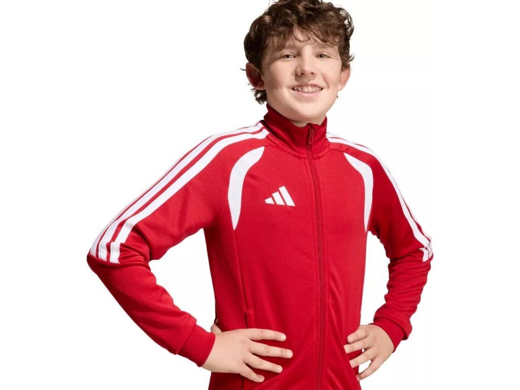 Dětská tréninková bunda adidas Tiro 26 League Training je navržená pro výkonnostní fotbal a díky úzkému střihu podporuje přirozený pohyb při každém tréninku. Vyšívané logo adidas a klasické 3 proužky dodávají nadčasový fotbalový vzhled, zatímco materiál účinně odvádí pot a pomáhá udržet tě v suchu a pohodlí. Celopropínací zip usnadňuje oblékání a kapsy na zip poskytují bezpečný prostor pro drobnosti, což z ní dělá ideální volbu pro trénink i volný čas.