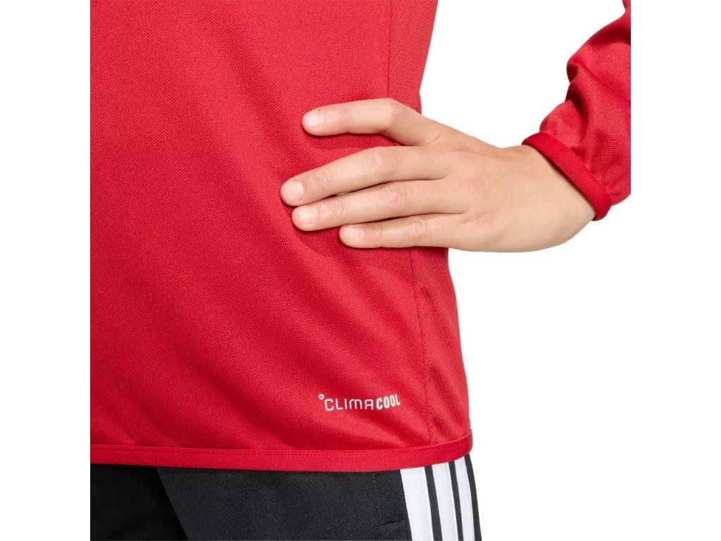 Částečné zapínání na zip umožňuje snadné vrstvení. Vyšívané logo adidas a 3 proužky přidávají na jeho atraktivitě. Tento top je vhodný pro trénink i rekreační hru.
