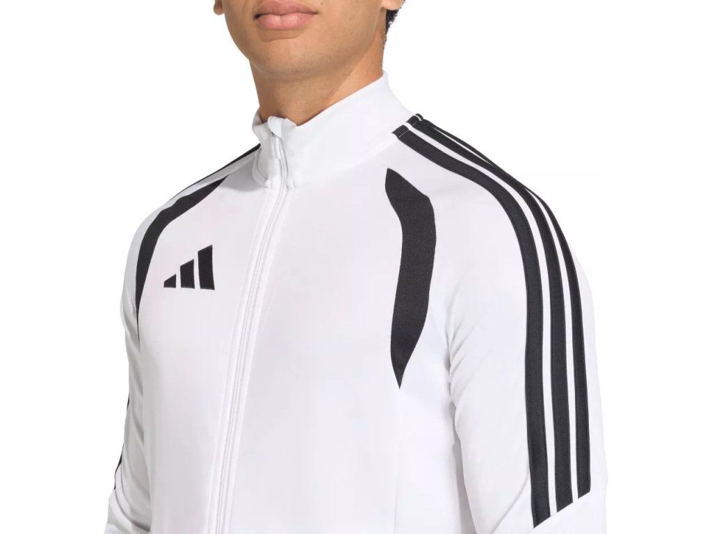 Pánská tréninková bunda adidas Tiro 26 League Training je navržená pro výkonnostní fotbal a díky úzkému střihu podporuje přirozený pohyb při každém tréninku. Vyšívané logo adidas a klasické 3 proužky dodávají nadčasový fotbalový vzhled, zatímco materiál účinně odvádí pot a pomáhá udržet tě v suchu a pohodlí. Celopropínací zip usnadňuje oblékání a kapsy na zip poskytují bezpečný prostor pro drobnosti, což z ní dělá ideální volbu pro trénink i volný čas.